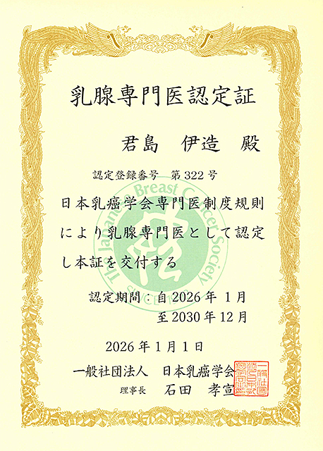 乳腺専門医認定証